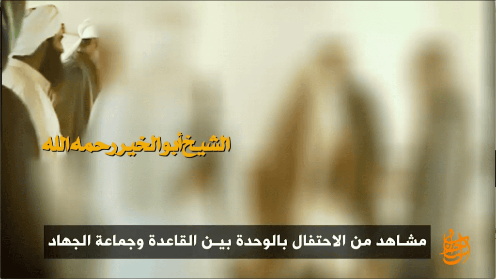 In addition to Abu Khalid al-Suri, As Sahab includes footage of three Egyptian al Qaeda veterans toward the end of Zawahiri’s video. They are Saif al-Adel, Abu Muhmmad al-Masri and Abu al-Khayr al-Masri. All three are shown in pre-9/11 Afghanistan celebrating the official merger of Zawahiri’s Egyptian Islamic Jihad group with bin Laden’s operation. (Screenshots can be seen below.)