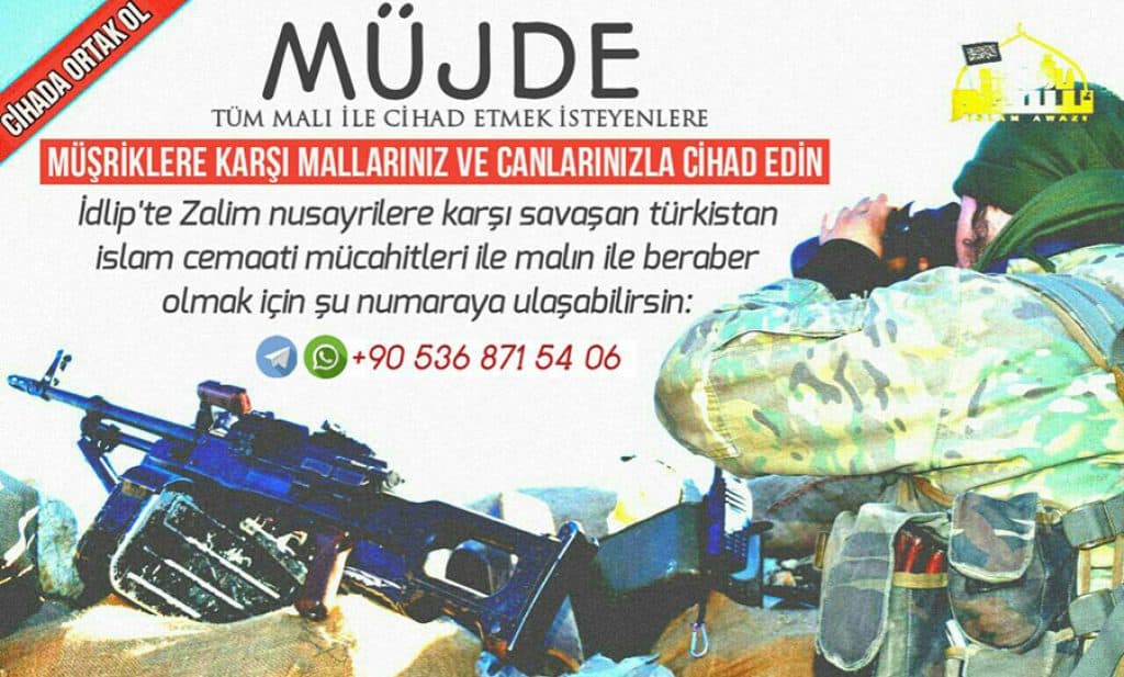 Doğu Türkistan Bülteni’s account of the leadership change ended with a call to support an aid campaign launched by the TIP in early February for its followers in Syria. The banner for the campaign (seen above) points to Telegram and WhatsApp as the best means for contributing to the TIP’s cause. A quote from the aforementioned Sheikh Abdullah al-Muhaysini was also used to advertise the effort, meaning that the TIP still considered him to be an ally at the time. Muhaysini, a US-designated terrorist who has his own links to al Qaeda, left HTS in Sept. 2017 and has been critical of the HTS-JTS infighting.
