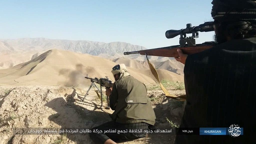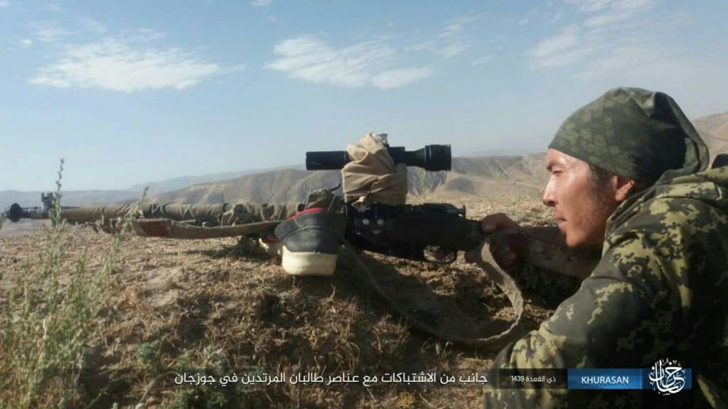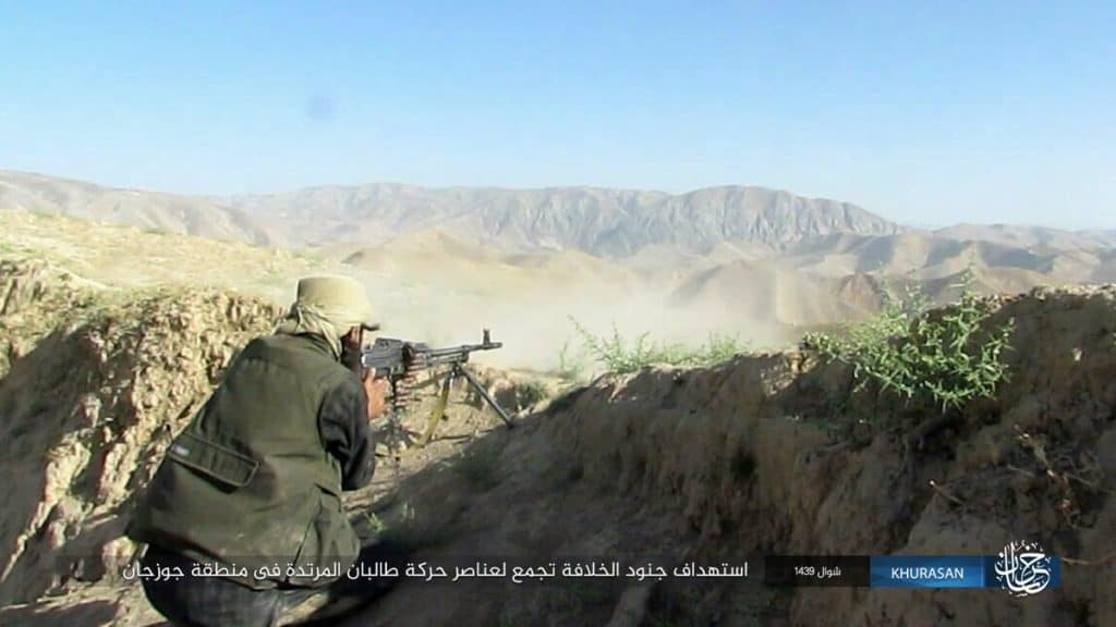 Earlier today the Islamic State released a photo-set from recent clashes with the Taliban in Afghanistan’s northern Jowzjan province. Scores of jihadists have been killed on both sides in the past two weeks.