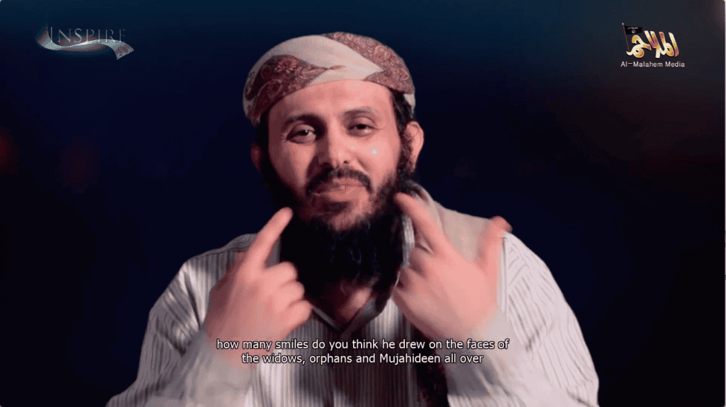 In 2017, Rimi attempted to generate new lone operations on AQAP’s behalf, releasing a video in which he called on the group’s followers to commit “simple” attacks in the West. Rimi claimed that such operations make Muslims smile. He pointed to his own smirk as evidence (see the image above). AQAP has orchestrated other, professional plots, such as the Jan. 2015 massacre at Charlie Hebdo’s offices in Paris, France. AQAP first conceived of that attack and then facilitated it.*