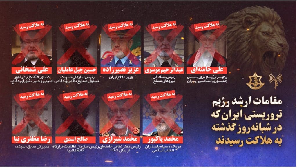 The Islamic Republic’s Armed Forces General Staff confirmed in a statement that seven senior officials were killed in the recent attacks:
